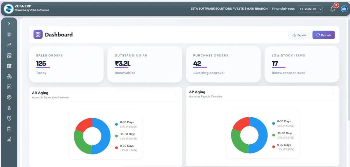 Zeta ERP Provides a Unified Platform Covering Finance, Supply Chain, Sales, Procurement, HR, Production and Retail. With Automation, Real-Time Analytics and Regulatory Compliance, It Delivers Configurable Workflows and Integrated Modules Designed to Streamline Operations, Improve Visibility and Empower Smarter Decision-Making Across Multi-Industry and Multi-Branch Enterprises